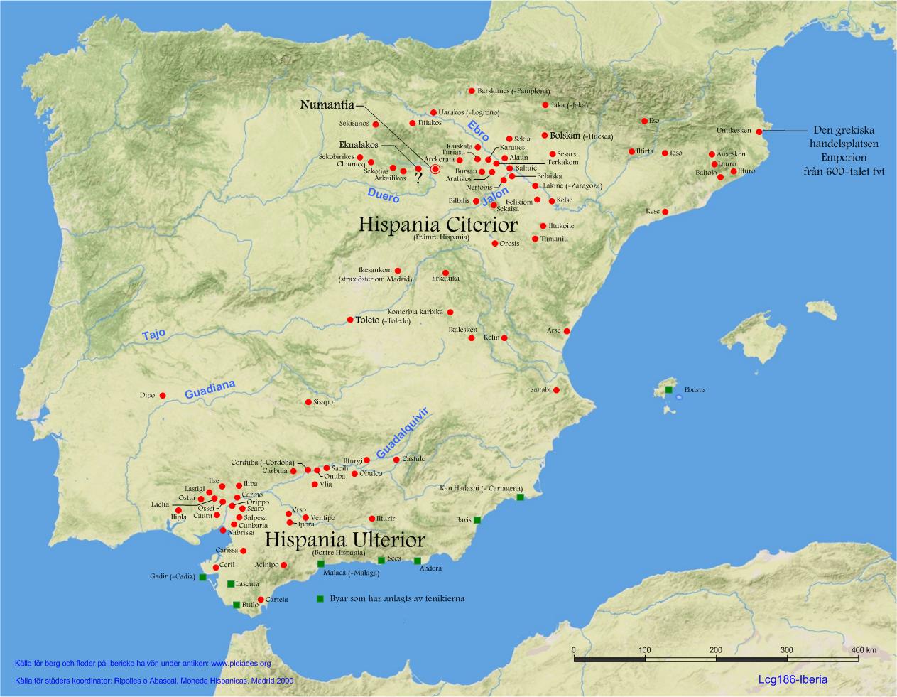 Fenikierna koloniserade Iberiska halvön på 700-talet fvt och upprättade handelsstationer utmed medelhavskusten. På 600-talet fvt anlade grekerna kolonier utmed den norra delen av halvöns kustremsa mot Medelhavet.