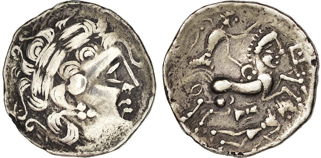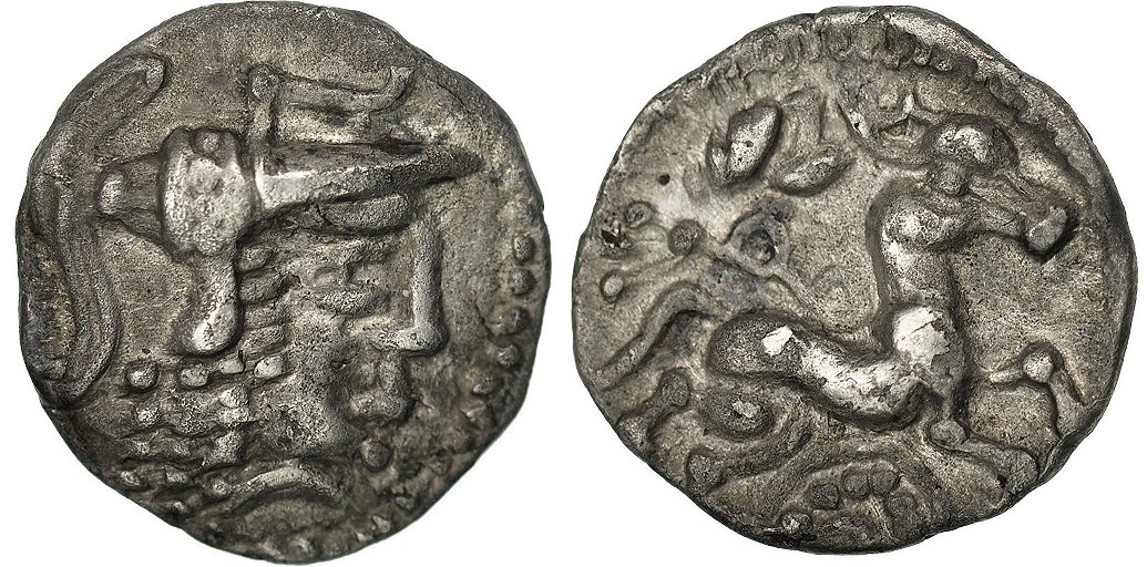 På frånsidan ser vi en häst i typisk keltisk stil.