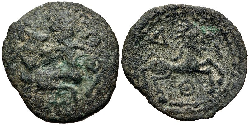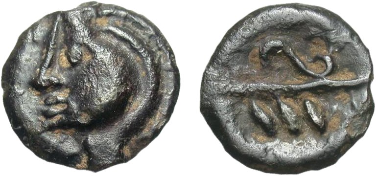 På åtsidan visas ett manshuvud vänt åt höger