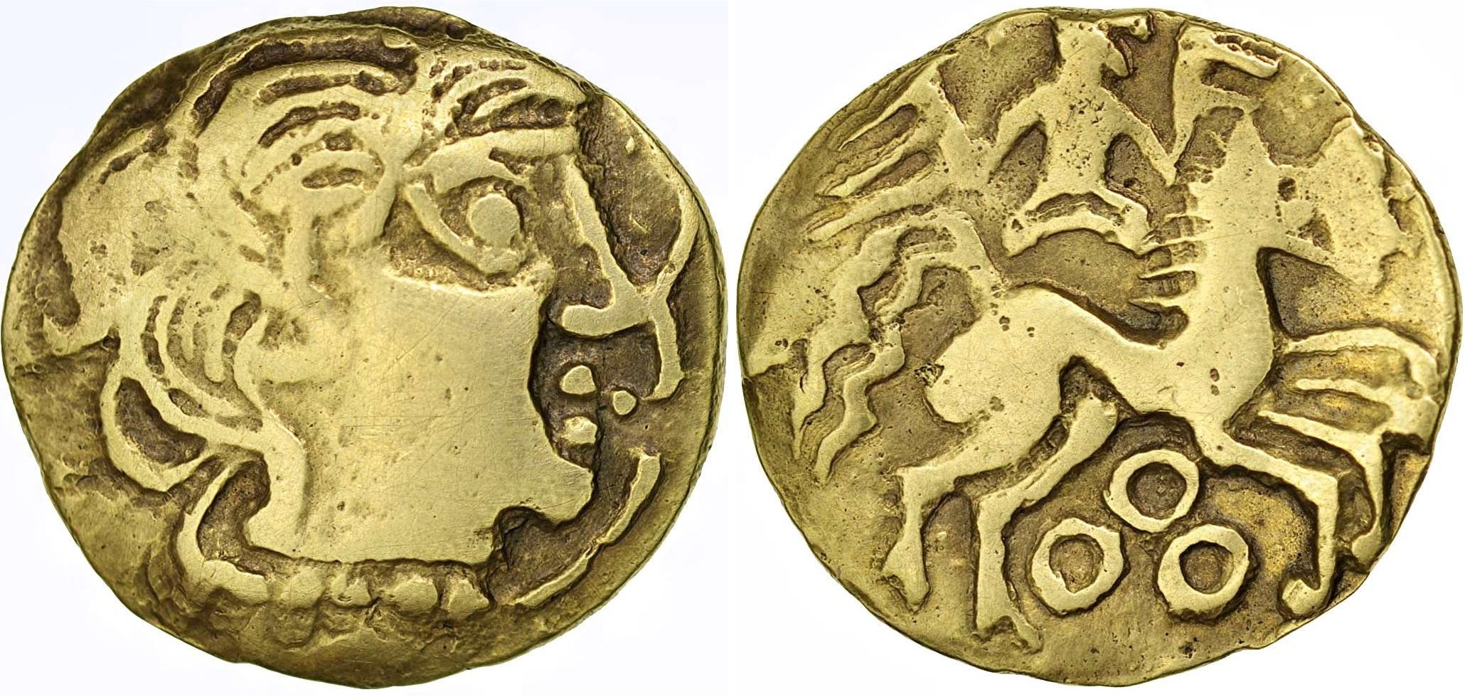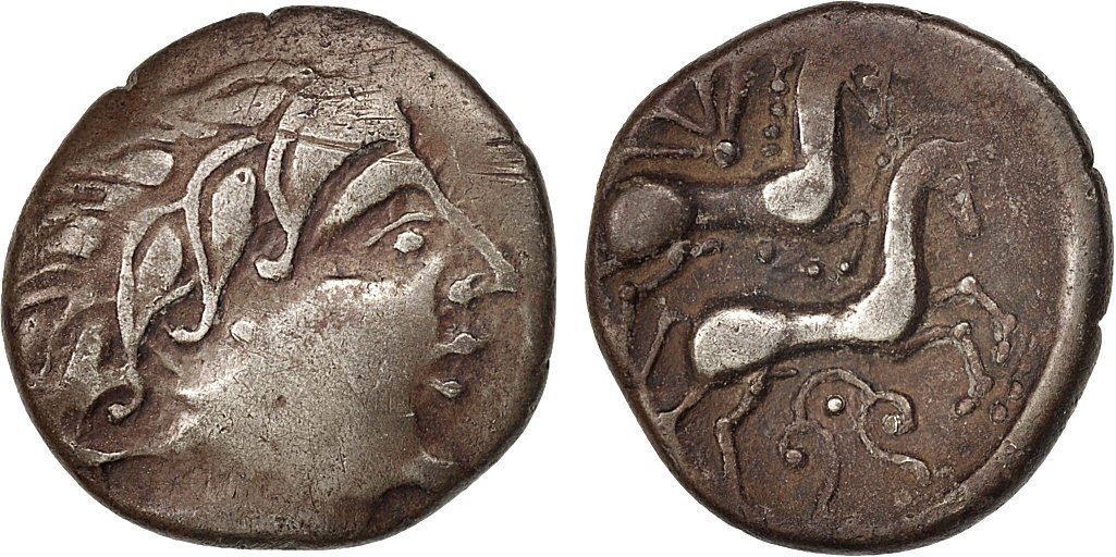 På åtsidan visas ett manshuvud vänt åt höger