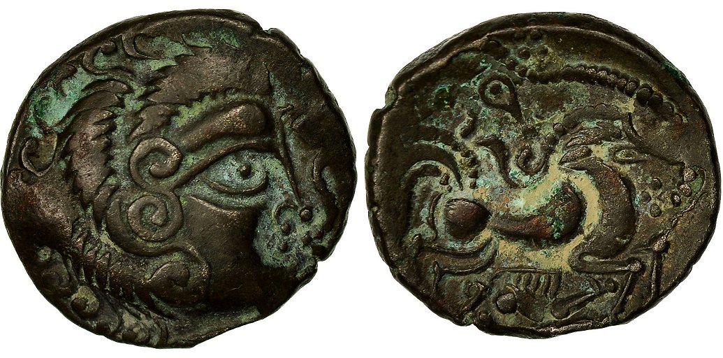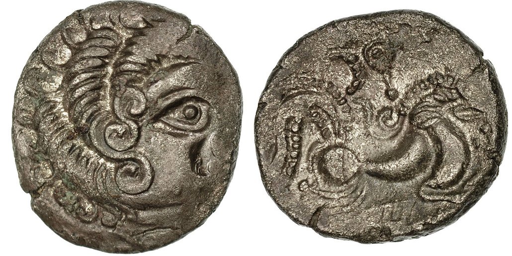 På åtsidan visas ett stiliserat manshuvud vänt åt höger.