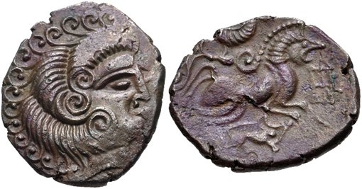 På frånsidan en häst i typisk stiliserad keltisk stil.