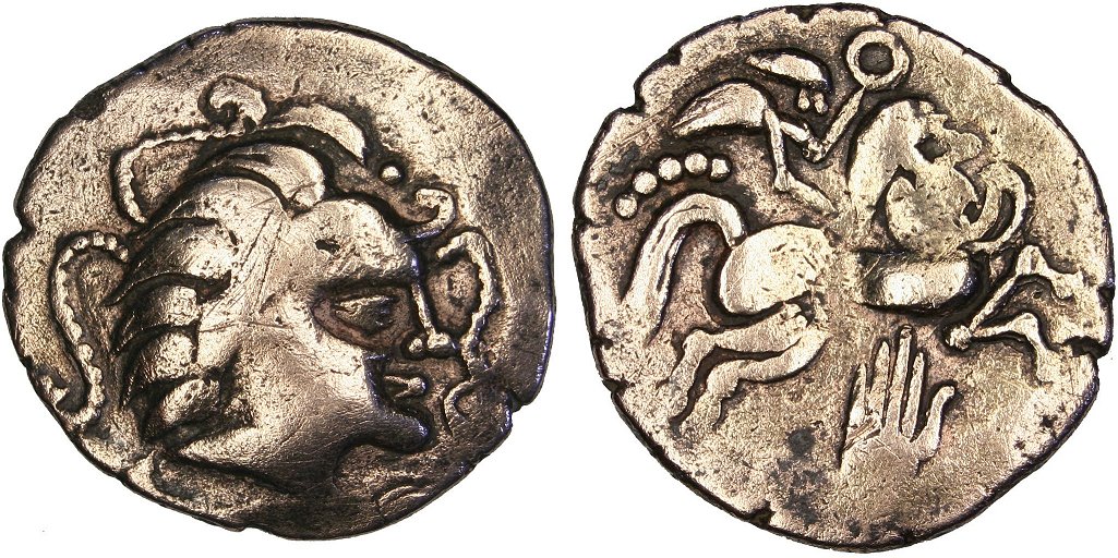 Åtsidan visar bilden av ett huvud vänt åt höger.
