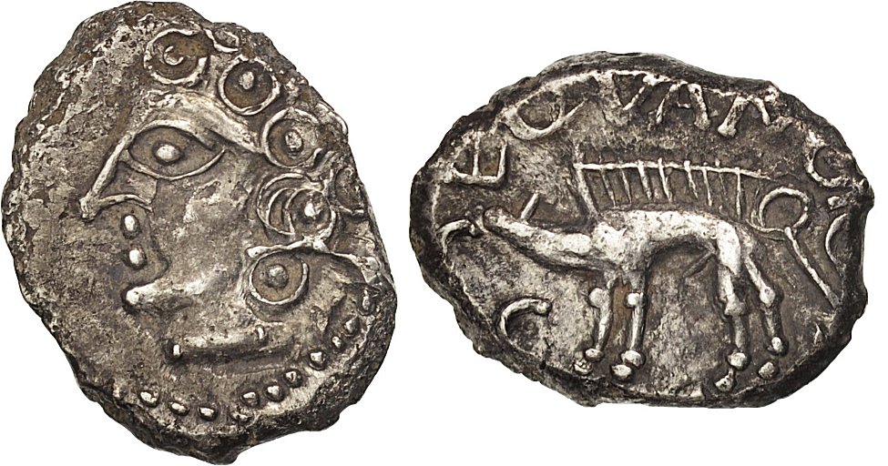 Åtsidan visar bilden av ett manshuvud vänt åt vänster.