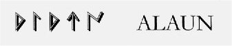 På frånsidan är det en ryttare till häst i full gallopp med en palmkvist över axeln. Under hästen står det ALAUN med keltiberiska runor. |