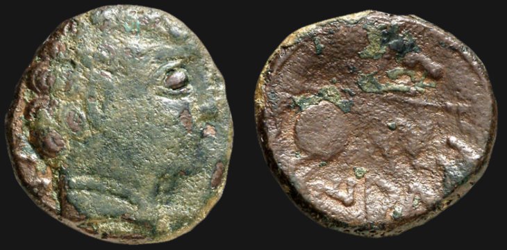 Byan Iaca utvecklades till den medeltida huvudstaden Jaca i det mäktiga Aragonien. Från Iaka har man funnit bronsmynt i nominalen As. Ett As hade en vikt som kunde variera mellan 6,0 och 12,5 g. *) Fernando Alvarez Burgos. La moneda Hispánica. Desde sus origenes hasta el siglo V. Madrid 2008. | |||