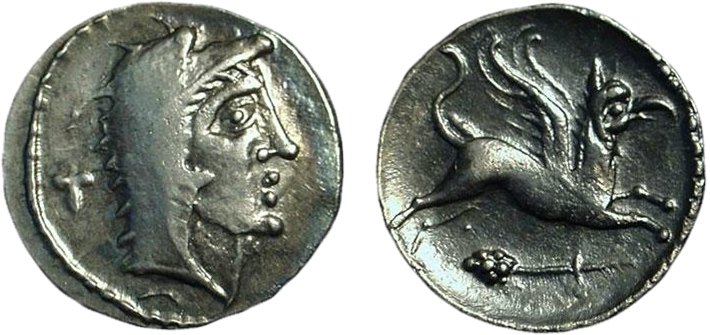 | Möjlig grekisk förlaga till ovanstående mynt här: |