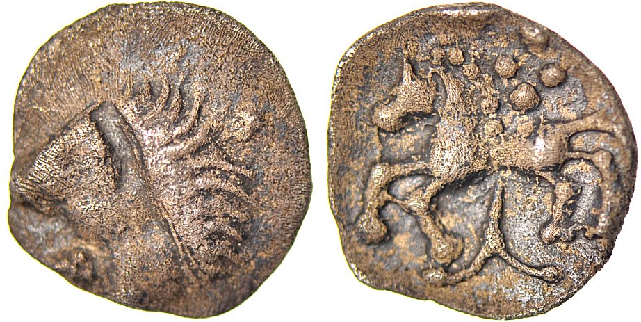 På åtsidan ett manshuvud och på frånsidan en häst