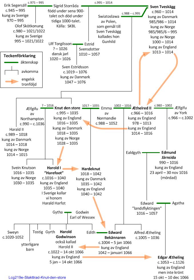 Knut (son till Sven Tveskägg) hade deltagit i invasionen mot England år 1013. Han upprepade krigsinsatsen och besegrade Ethelred som avled av skadorna år 1016. Därmed hade Knut återtagit det rike som det var tänkt att han skulle få i arv efter sin far. Han kom att kallas Knut den store och han härskade över England, Danmark, Norge, Skåne och nästan hela den svenska västkusten. Han hade skapat åt sig ett "nordsjöimperium".