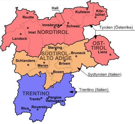 Efter första världskriget styckades Tyrolen upp så att Sydtyrolen och Trentino kom att tillhöra Italien.
