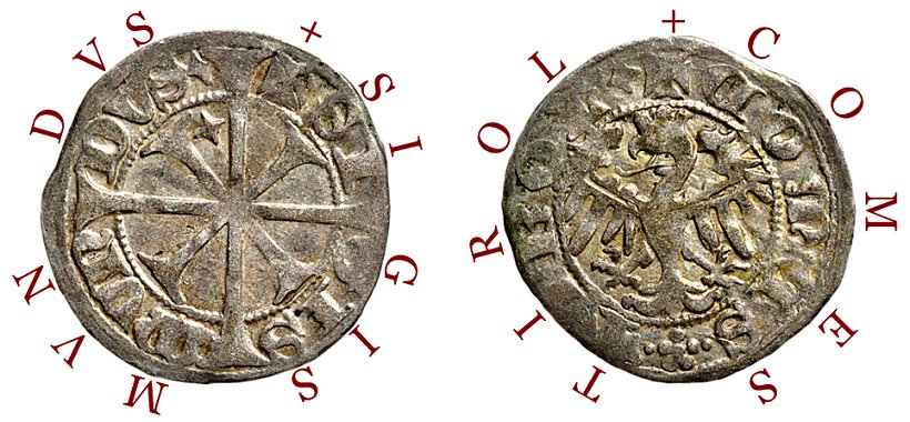Sigismund, hertig av Österrike av huset Habsburg, föddes 1427 och han dog 1496. Sigismund fick grevskapet Tyrolen i förläning 1446 men han tvingades lämna ifrån sig grevskapet 1490. Under Sigismunds regering i Tyrolen producerades en stor mängd mynt i gott silver i myntverkstaden i Méran under åren 1446-1477 (nuvarande Merano i Italien). År 1477 flyttades myntverket till Hall och Konrad Michelfelder blev dess myntmästare. Han innehade tjänsten till 1482. Nedan presenteras ett mynt från den perioden.