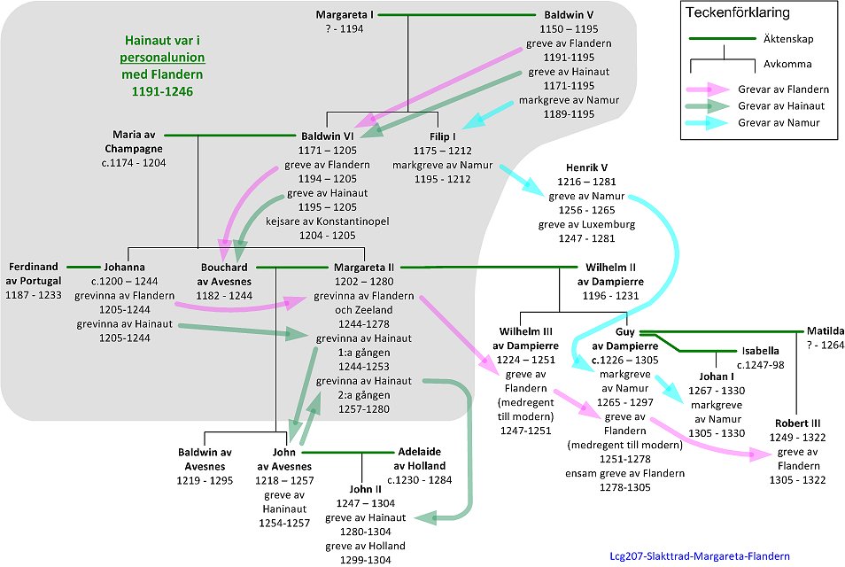 Berättelsen om Margareta belyser hur feodalherrarnas domäner kunde sträcka sig över fransk-tyska riksgränsen. Margaretas farfar, Baldwin V, hade till och med ärvt tre grevskap: Flandern, Hainaut och Namur. När han dog delades dessa upp mellan hans två äldsta söner Baldwin och Filip.