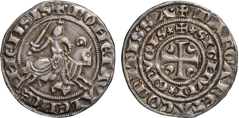 AR Petit Gros 1244-80 Margareta II av Flandern Åtsida: MONETA VALENCENENSIS Frånsida: MARGARETA COMITISSA / SIGNVM CRVCIS