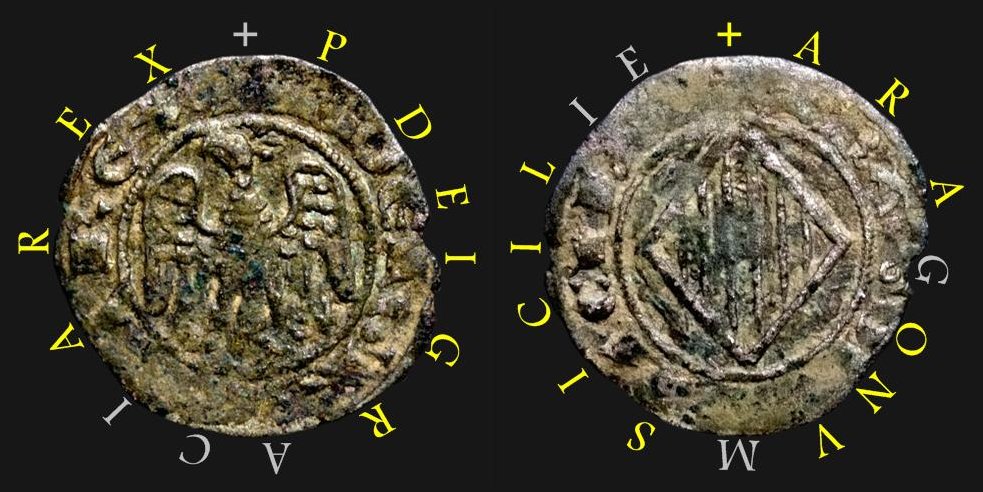 Dubbel Denaro, 1282-1285, Pedro III "den store" av Aragonien, Messina