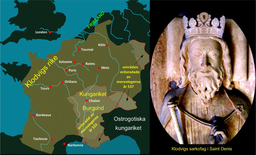 Klodvig I av den merovingiska dynastin kom till makten år 481 och han gick ur tiden år 511. Han lade under sig ett område som nästan motsvarade dagens Frankrike, och han är därför en betydande person för fransmännen. Man kan säga att Klodvig I är för det franska folket vad Gustav Vasa är för oss.