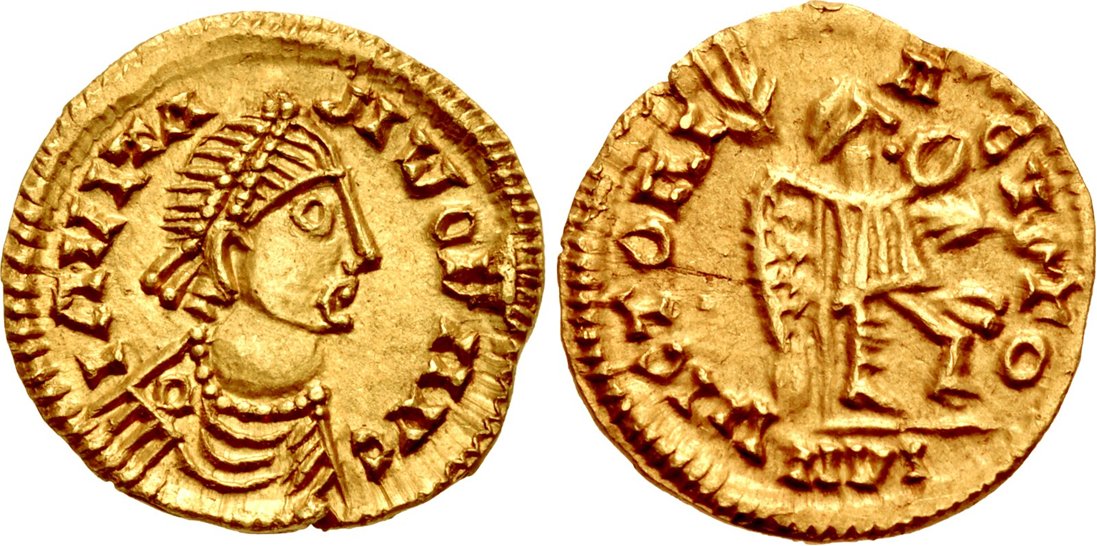 Merovingerna lät prägla guldmynt i nominalerna solidus och tremissis. Det gick tre tremissis på en solidus enligt myntordningen i Rom, och merovingerna följde denna praxis.