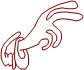 Han lyfter höger hand i en välsignande gest.