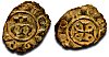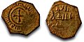 Nedan visas en halv och en hel follaro i brons i naturlig storlek. Observera att mynten är åttkantiga. De har således inte blivit utsatta för åverkan (metallstöld).