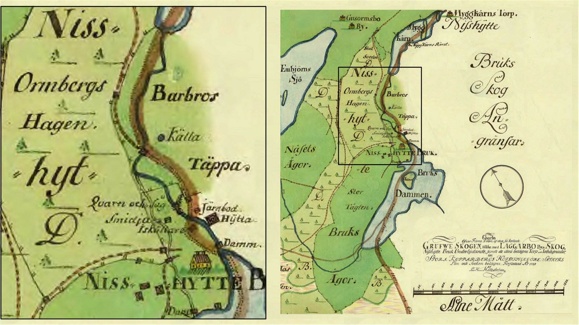 Kartan är upprättad av Lars Henric Hilleström (1735-1813) som var kommissionslantmätare i Falun [2].