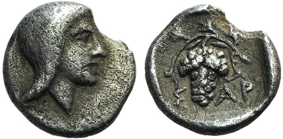 Myntet är präglat av en thrakisk stam som troligen bodde i Strymondalen.
