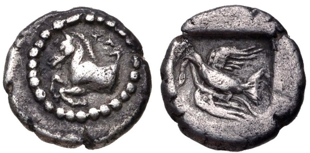 Oktodrachm (8 drachmer), strax före år 500 f.v.t. Thrakien.