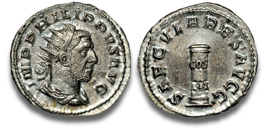 AR antoninian från år 248, Filip I, Rom. storlek 22 mm. vikt 4,18 g. Ref: Sear 8961