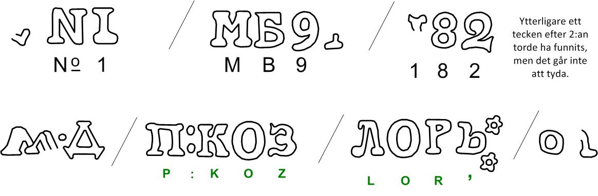 Pskov skrivs ПСКОВ med kyrilliska bokstäver. Vi kan på plomben utläsa ordet П:КОЗ. Kan det vara så att kolon ersätter С av utrymmesskäl, samt att З egentligen borde vara ett В? Nej, det är att låta fantasin skena iväg.