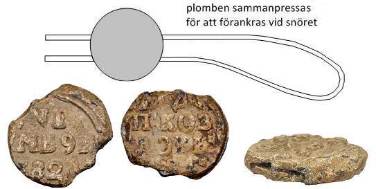 uppstod också inpräglad text på plombens bägge sidor.