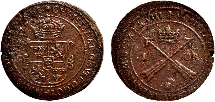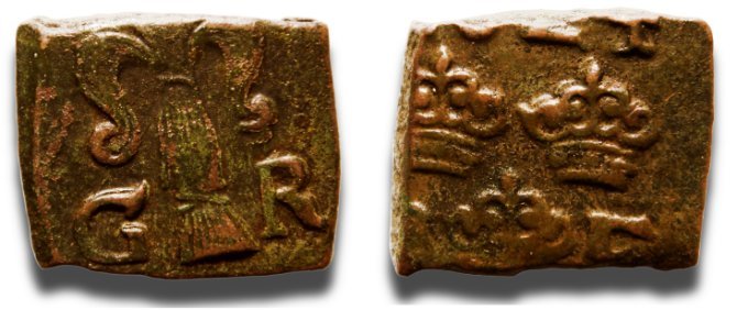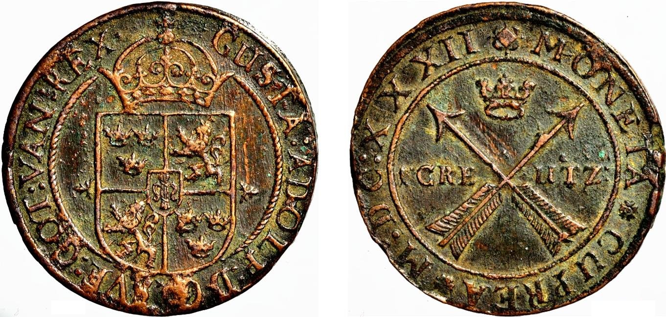 På åtsidan ska det stå GAR (Gust Adolf rex), men A fick inte plats.