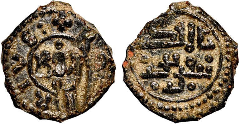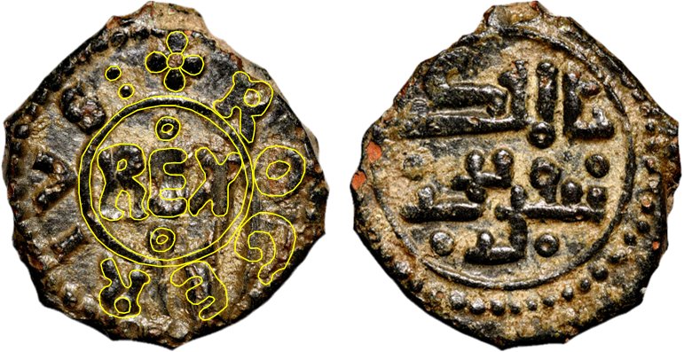 På frånsidan finns en arabisk text som i översättning lyder: kung Tancred.