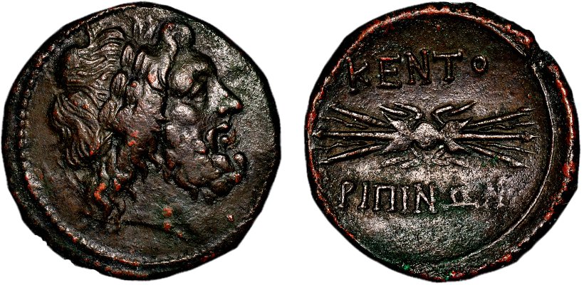 Myntet finns med i Sear, Greek Coins and their Values, Vol 1 (från år 1978) som nr 1081. Det underliga är att myntet här benämns AE Dekonkion (i betydelsen tio Onkier). Myntet Onkion präglades som kopparmynt på Sicilien under 400-talet f.v.t., men på 200-talet var staden Kentoripai starkt grekiskt influerad, vilket gör att vi kan anta att Grekisk mynträkning torde ha tillämpats i staden.