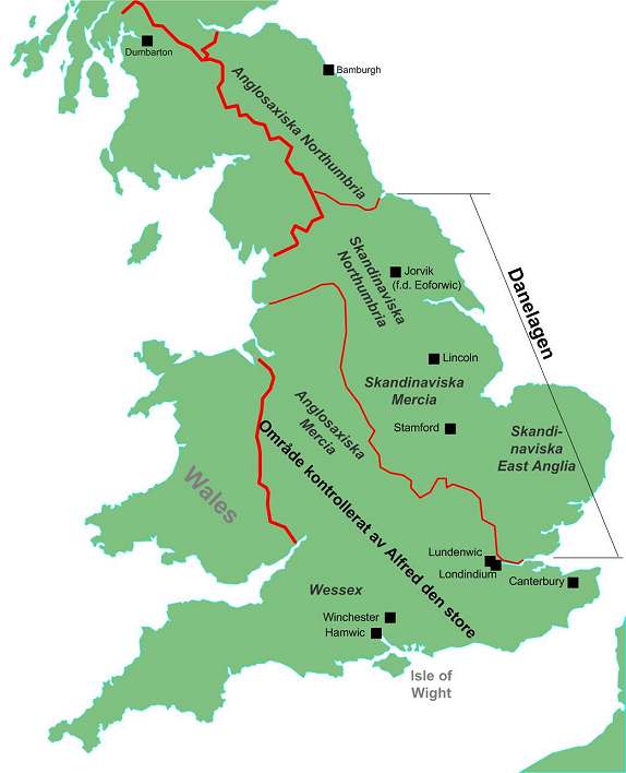 År 877 var England uppdelat i en anglosaxisk del och en skandinavisk del (Danelagen).