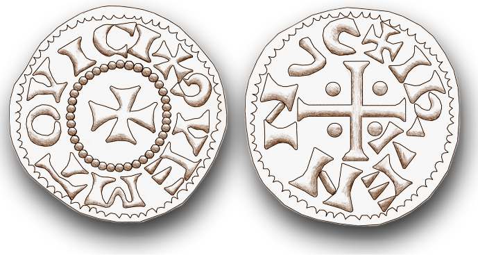 På åtsidan kan vi läsa CNVT REX (kung Cnut). Han var antagligen inte kung, men vad spelar det för roll? Hundra år senare levde en annan Cnut som vi känner som regent för hela England, men det är en annan historia.