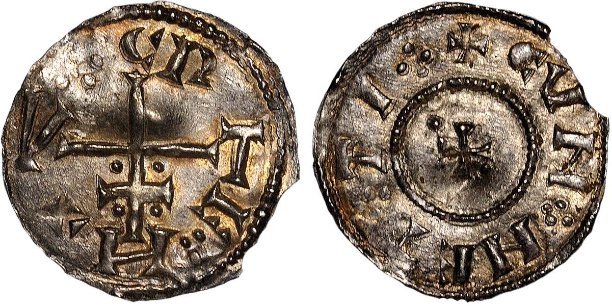 Åtsida: + QVEMTOVICI (myntort Quentovic)