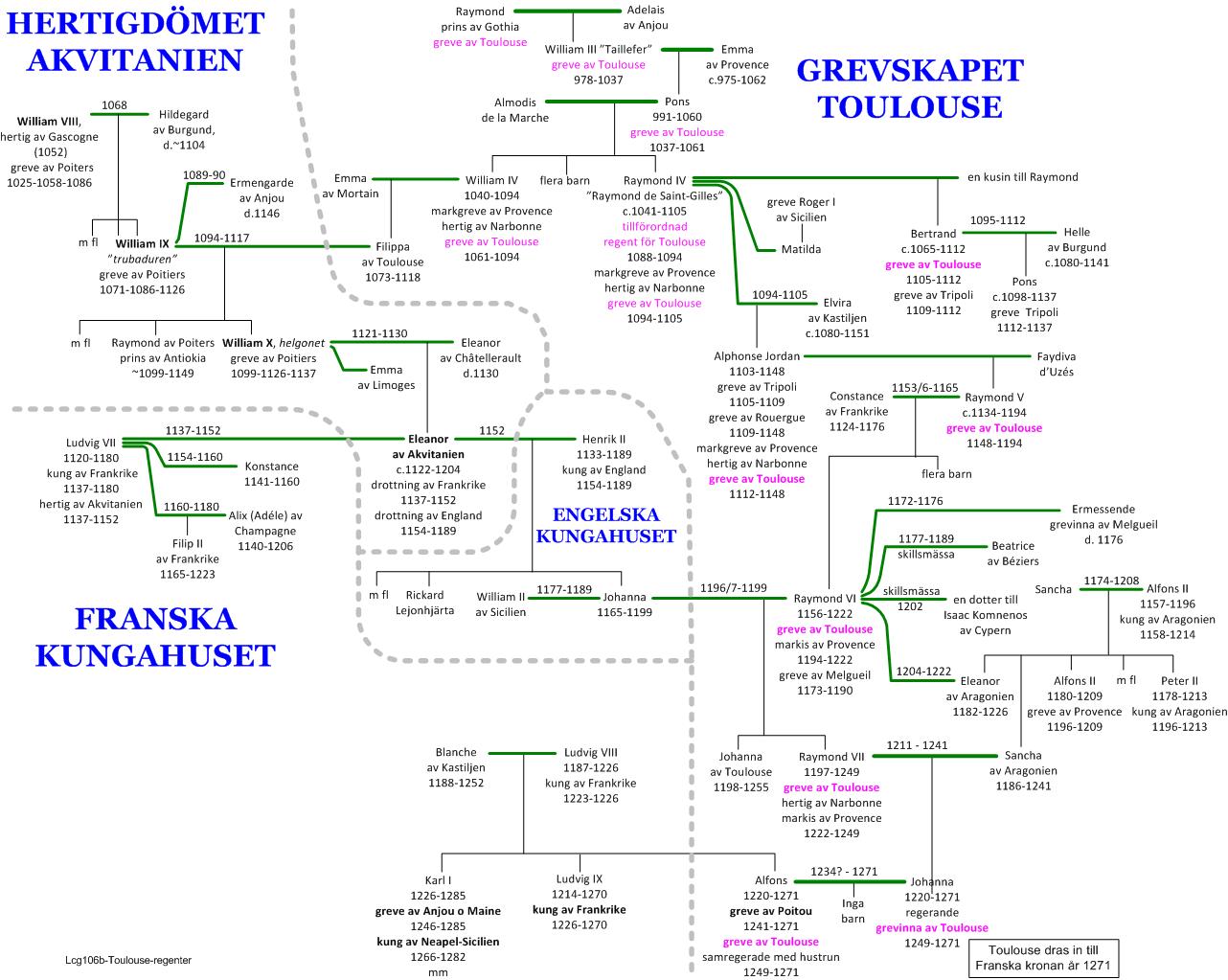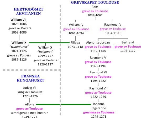 Sammanfattande släktträd för grevarna av Toulouse från 1000-talet och framåt