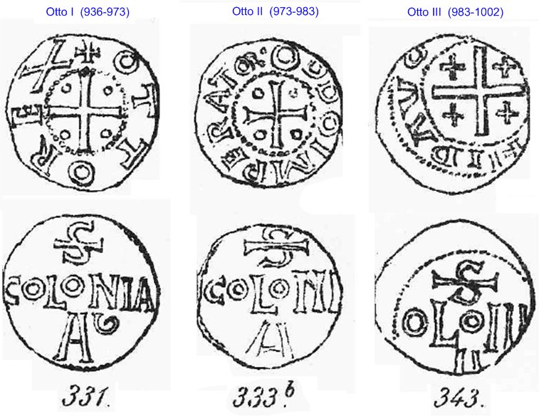 Tyska kungar och ärkebiskopar lät slå mynt i Köln enligt följande: