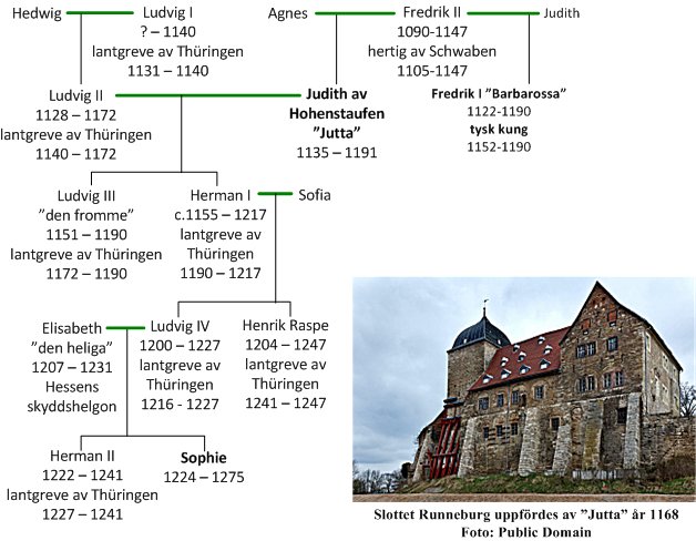 Judith av Hohenstaufen[2] ingick äktenskap med lantgreven Ludvig II av Thüringen. Judith (allmänt kallad Jutta) lät uppföra slottet Runneburg år 1168. Platsen var väl vald eftersom den låg mitt emellan slotten Wartburg (uppfört 1067) och Neuenburg (uppfört 1090). I anslutning till Runneburg växte staden Weissensee fram som fick marknadsrättigheter år 1198 och stadsprivilegier år 1265.
