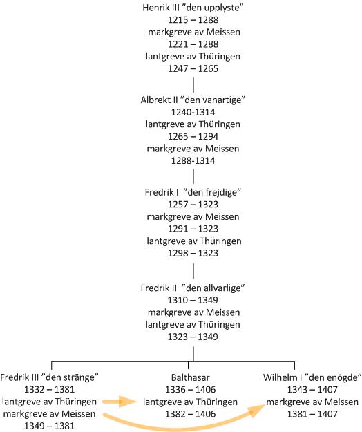 Fredrik III "den stränge" var lantgreve av Thüringen och markgreve av Meissen från år 1349. Han gick ur tiden år 1381 och det uppstod stridigheter inom Wettindynastin om hur makten över Thüringen och Meissen skulle fördelas.