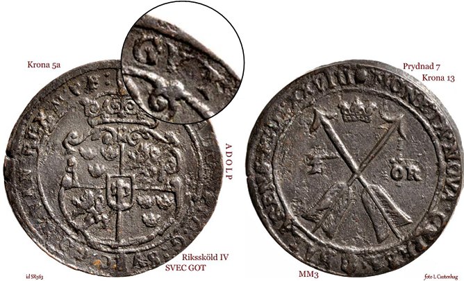 Under år 1628 råkade gravören stava fel. Det blev GVT ADOLP, dvs Gut Adolp (bra Adolf). Ett enda mynt har överlevt till dags dato med denna märkliga felstavning.