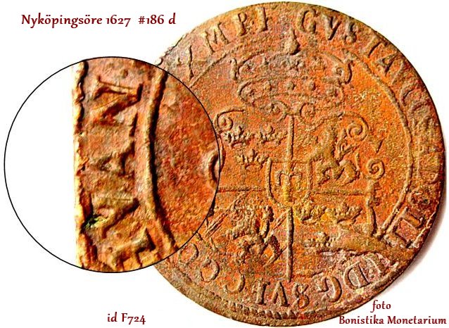 Se följande bilder som visar ett nyköpingsöre 1627 där ordet VAN har avstavats av en disträ gravör.
