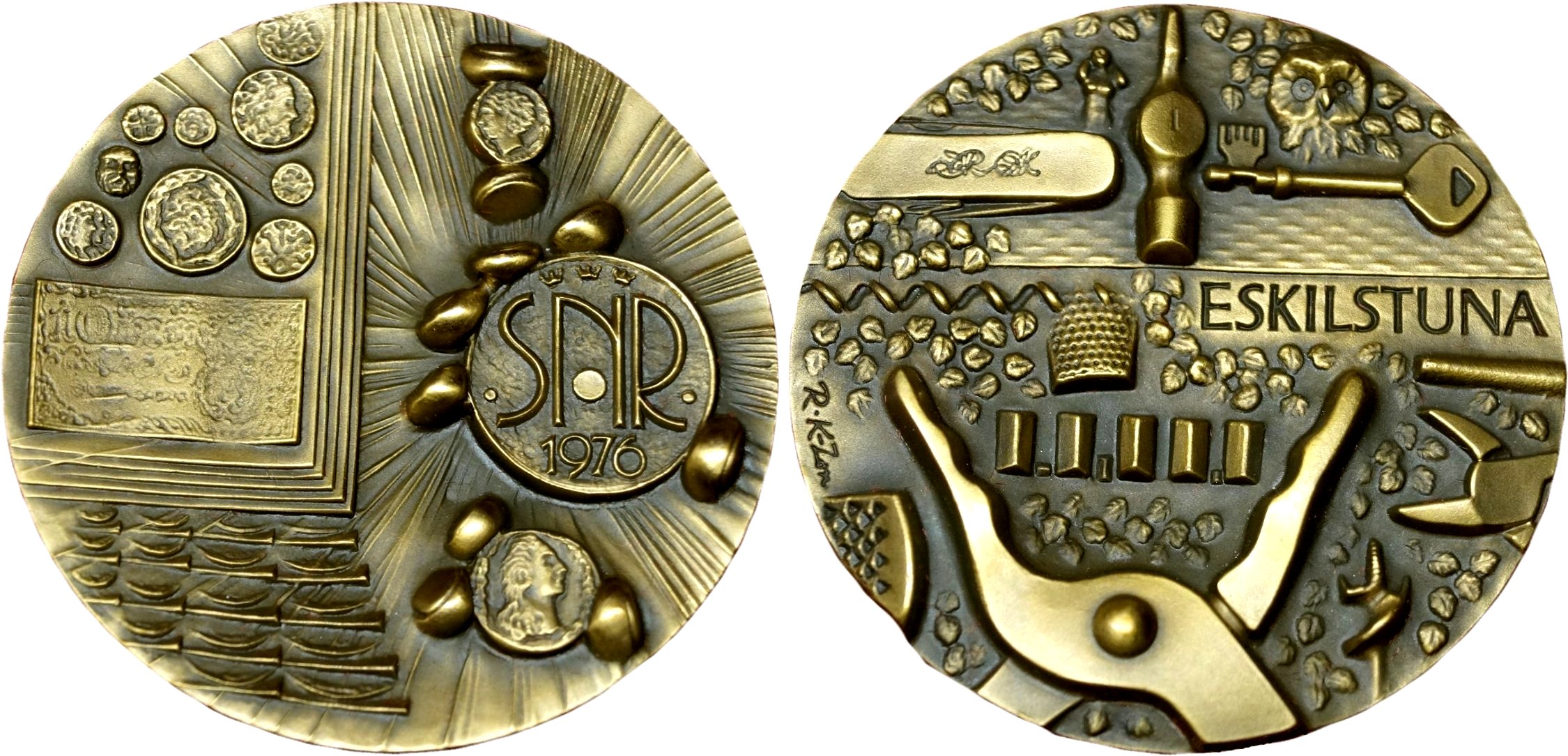 SNRs stilftelsemedalj 1976, utformad av Rune Karlsson. Bilden lånad från en Internetauktion.