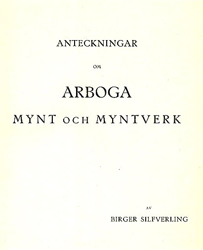 Med anledning av 300 års-minnet av myntverket i Arboga, gav Birger Silfverling ut ett litet häfte på 30 sidor år 1928 om Arboga mynt och myntverk. Silfverling berättar att Gustav Vasa lät slå ettöringar i Arboga år 1522, men myntverkets placering är okänt. Silfverling gissar att myntverket var inrymt hos någon guldsmed i staden. Det görs också trolig att det redan på medeltiden hade slagits mynt i staden. |