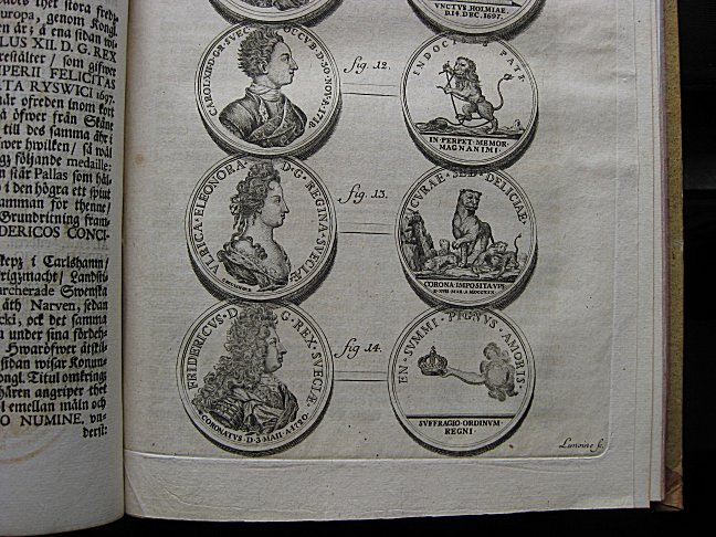 Det torde inte ens existera en handfull numismatiska verk tryckta före år 1800 som både är tryckta på svenska språket och samtidigt är illustrerade. I skrivande stund tänker jag på Elias Brenners förstautgåva Thesaurus Nummorum Sveo-Gothicorum . . ., tryckt på latin eller svenska i Stockholm år 1691 och Evald Ziervogels (1728 &arig; 1765) Trettio historiska afhandlingar öfwer Swenska Mynt och Medailler: år 1755, weckotals utgifne, Stockholm 1755. Om man har intresse av J. Peringskiölds Ättartal för Swea och Götha Konunga Hus (He 1455) bör man hålla ett öga på antikvariatsboklådorna och vara utrustad med tålamod och en stor portion tur, ty den är mycket sällsynt.