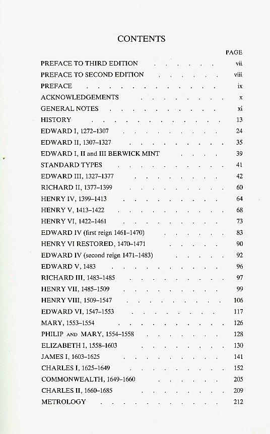 Jeffrey J North publicerade på 1960-talet boken om de engelska mynten från tiden 650-1272. Föreliggande volym (som är den tredje omarbetade upplagan) är en fortsättning, och den publicerades 1991.