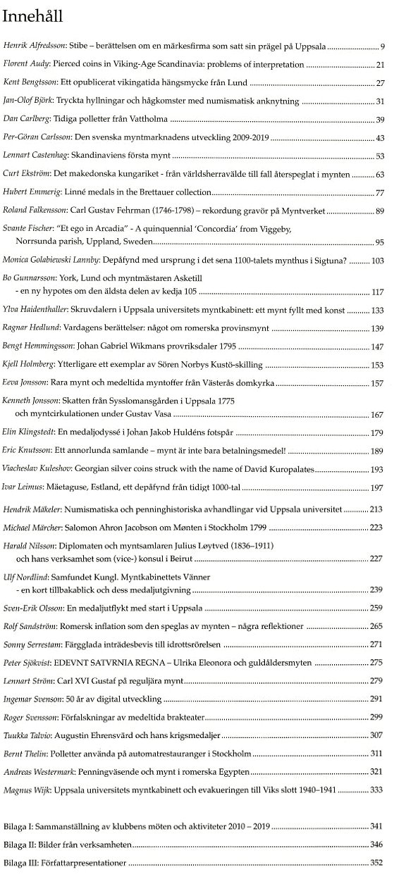 antologi utgiven av Numismatiska Klubben i Uppsala, 2019